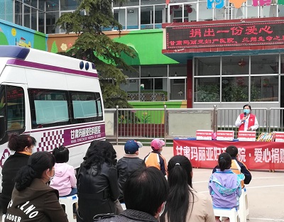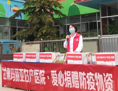 活动开始后,甘肃玛丽亚妇产医院院长杨春秀在捐赠仪式上发表讲话。她说:“2020年春节以来,新冠肺炎疫情肆虐全国乃至世界,全国人民就此开展了声势浩大的抗击疫情的行动,取得了阶段性的胜利。由于境外新冠肺炎的输入,当前疫情防控形势依然十分严峻。特别是学校,人员相对密集,防控物资缺乏,更是疫情防控的重要阵地。如何做到万无一失,除了学校采取严格的防控措施外,需要社会各方面的关注和支持。已经坚持做了十年公益的玛丽亚妇产医院,积极响应省、市、区政府的号召,在参与医院防控一线工作的同时,也非常关注我们基层学校的老师和同学。
