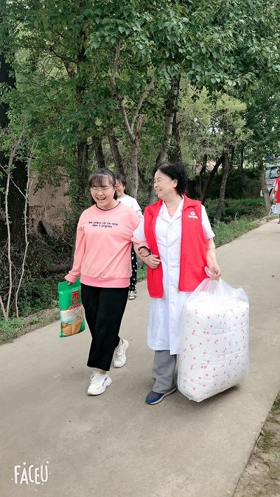 由于受资助的贫困大学生家庭大部分是因病致贫,此次助学公益行玛丽亚医院特地组织了医护团队。有四十年临床经验的中西医结合科孙淑娴主任为受助家庭中的老人进行了查体、听诊、开具了处方,并针对病情送上了药品,随行的护理人员对老人做了简单护理。