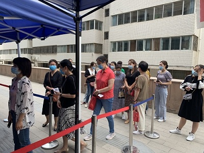 为了保证本次检测行动正常有序进行,院感科提前编制了检测人员名单和顺序,通知各科室及部门负责人,并在医院微信群发布重要通知,对医务人员参加核酸检测提出了具体要求。本次检测分组进行,检查过程中,医院严格遵循专业机构和专业人员的检测要求,有序排队耐心等候检测。因为准备工作到位,本次检测行动的效率很高,每个人检测过程不到1分钟,参与检测的医务人员都进行了登记和备案。