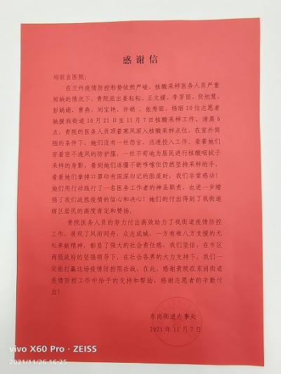 在今年秋冬之交兰州新冠疫情爆发后,由于城关区人口众多,核酸采样工作面临巨大的压力。因此甘肃玛丽亚妇产医院接到了城关区卫健委支援兰州市核酸采样工作的通知。院领导非常重视,立即发出了动员令。姜耘耘第一时间向院长请缨要求支援抗疫一线。在十名志愿者队伍组建完成后,院长委托她临时负责队员的管理工作。火线受命,顿时让她感到肩上责任的重大。她当时就表示,院领导这么信任我,我一定不负重托,不辱使命,团结和带领大家圆满完成这次志愿服务任务。